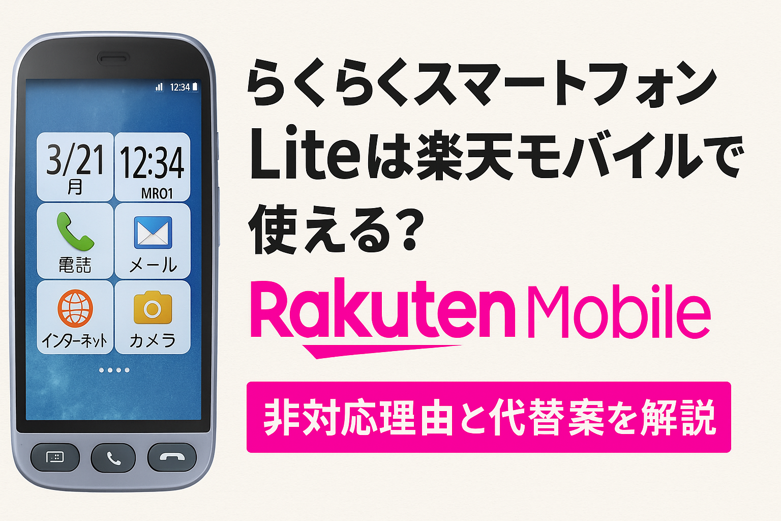 機種 らくらくスマートフォン Lite MR01は楽天モバイルで使える?非対応理由と代替案を解説 らくらくスマートフォン Lite MR01は楽天モバイル非対応。原因と代替機種、乗り換え手順、最新キャンペーンまでわかりやすく解説します。 2025.10.05 機種
