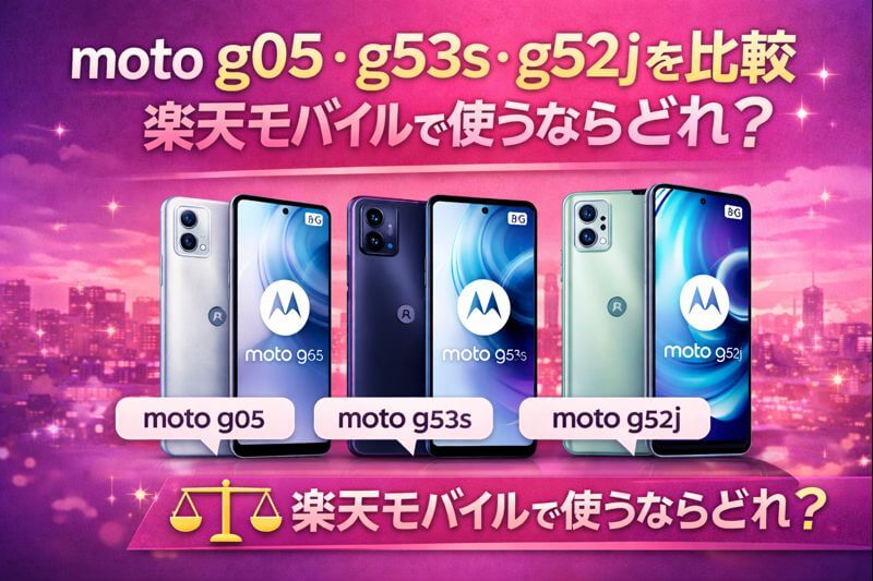 moto g05・moto g53s・moto g52jは、いずれも価格帯が近く「楽天モバイルで使えるモトローラ端末」として比較されやすいモデルです。しかし実際には、通信の安定性・対応バンド・使えるエリアには明確な差があります。楽天モバイルは端末選びを間違えると「圏外になりやすい」「屋内でつながらない」と感じやすいため、スペック以上に“回線との相性”が重要になります。