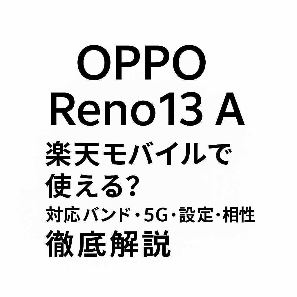 本記事では、OPPO Reno13 A が楽天モバイルで問題なく使えるかどうかを、対応バンド・5G対応・設定方法・SIM周りの注意点・通話品質・通信速度・相性・おすすめの申し込み方法 まで徹底的に解説します。楽天モバイルは Renoシリーズとの相性が良く、非常に快適に使えるケースが多いため、この記事を読めば不安なく乗り換えが可能になります。