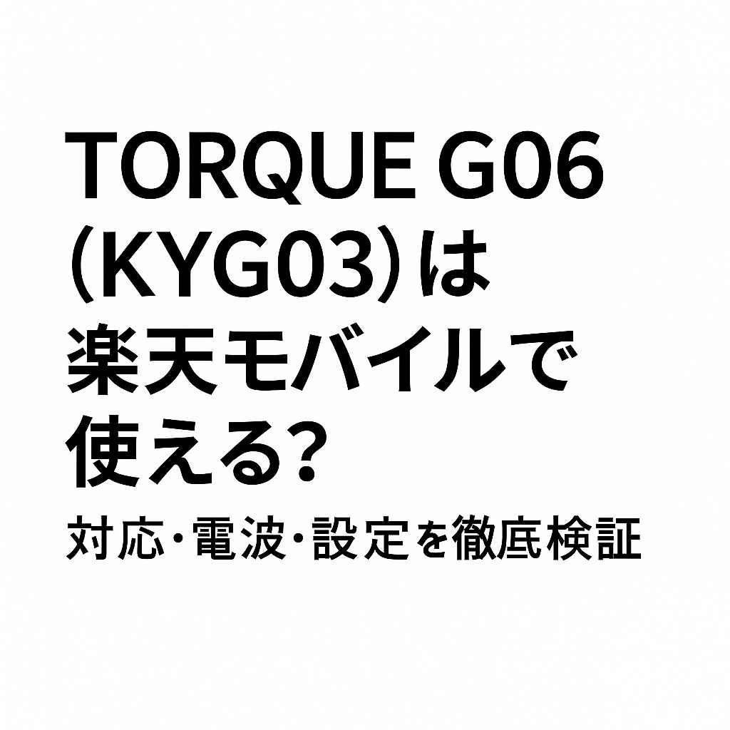TORQUE G06(KYG03)は、au(KDDI)向けに販売されている頑丈スマートフォンで、その通信仕様はauネットワークに最適化されています。そのため、楽天モバイルと完全一致した周波数構成ではありません。しかし、楽天モバイルの最重要バンドである Band 3(1.7GHz) に対応しているため、楽天回線エリアでは問題なく通信できます。